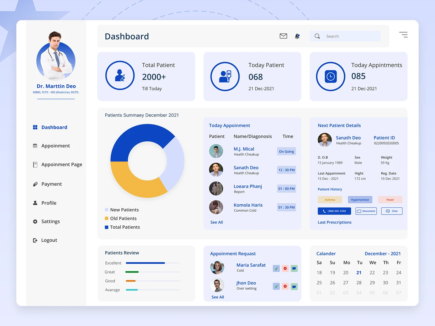 Patient-friendly system with doctor schedules, notifications, and admin controls.
